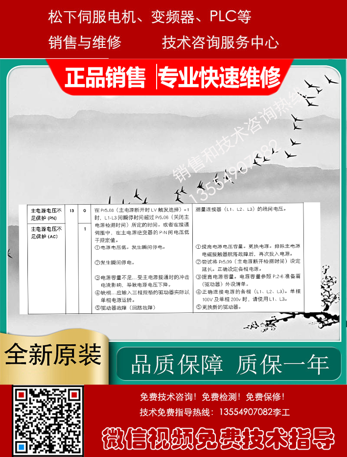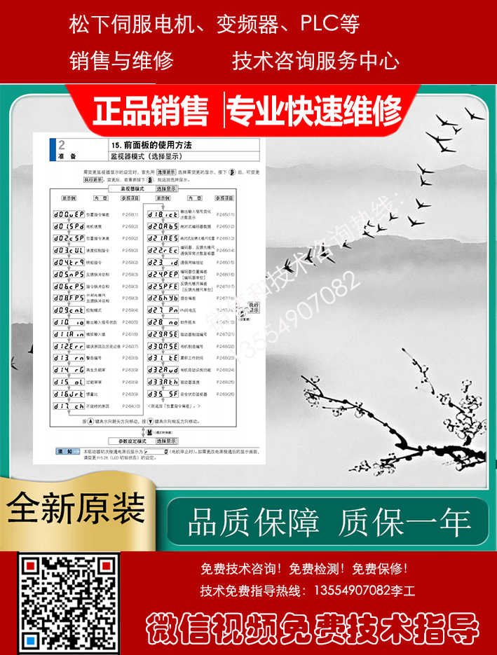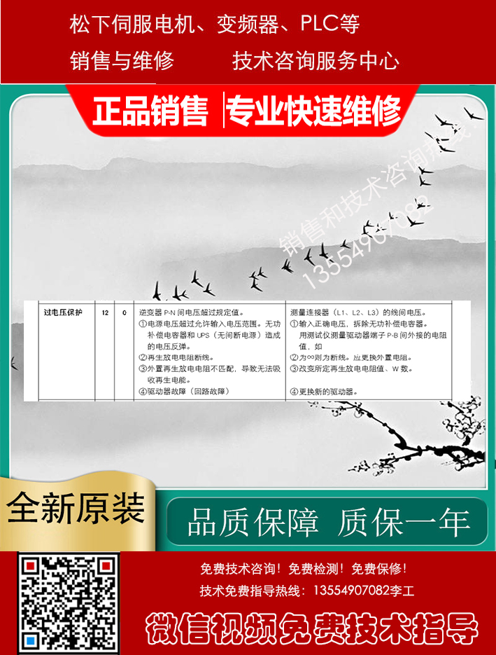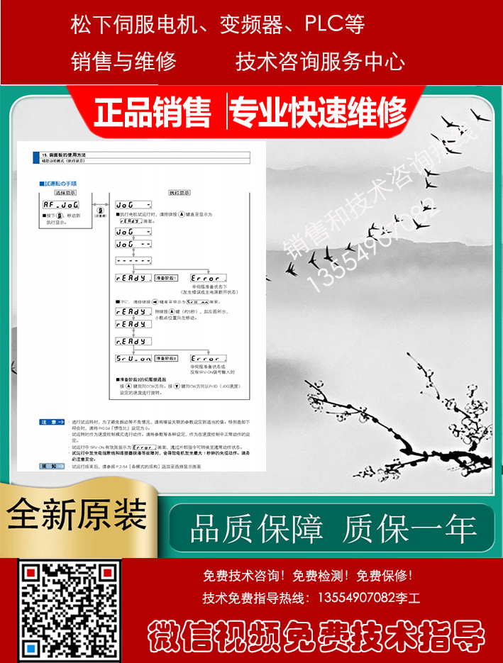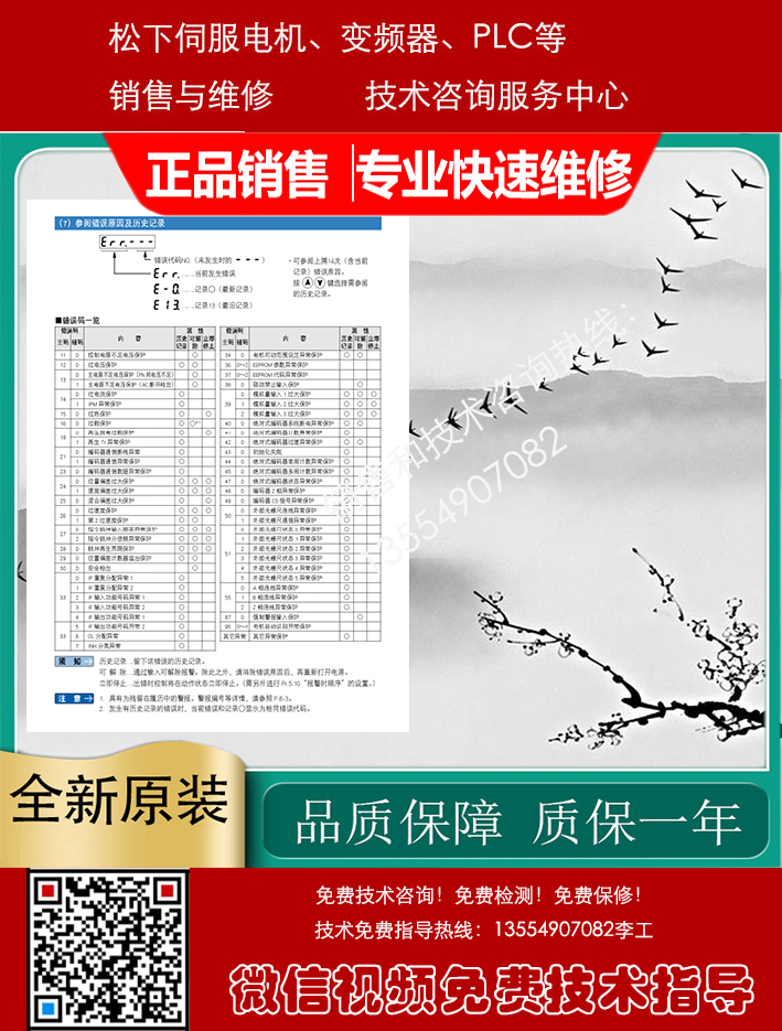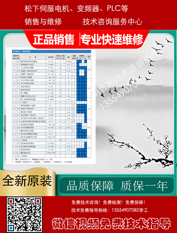 Panasonic松下伺服驱动器、伺服电机、变频器、PLC、触摸屏销售与售后咨询维修服务中心,专业提供Panasonic松下数控产品的销售维修服务,包括: Panasonic松下伺服电机,Panasonic松下伺服驱动器, Panasonic松下变频器,Panasonic松下PLC触摸屏等及其它配件。