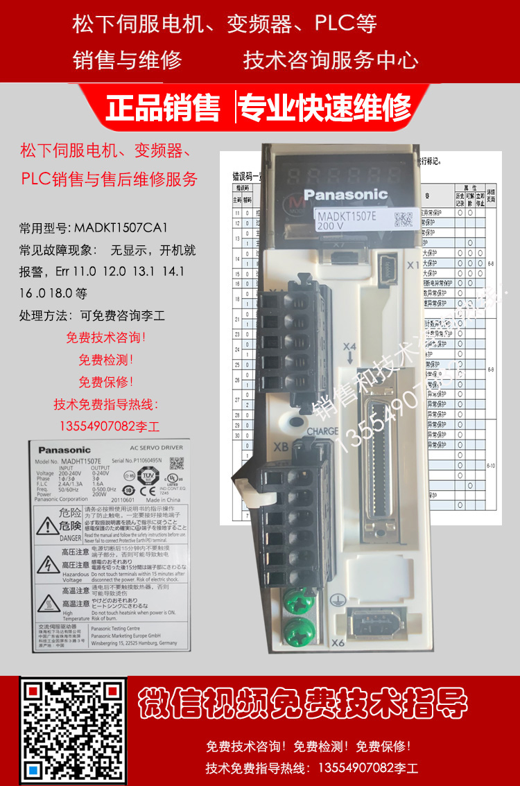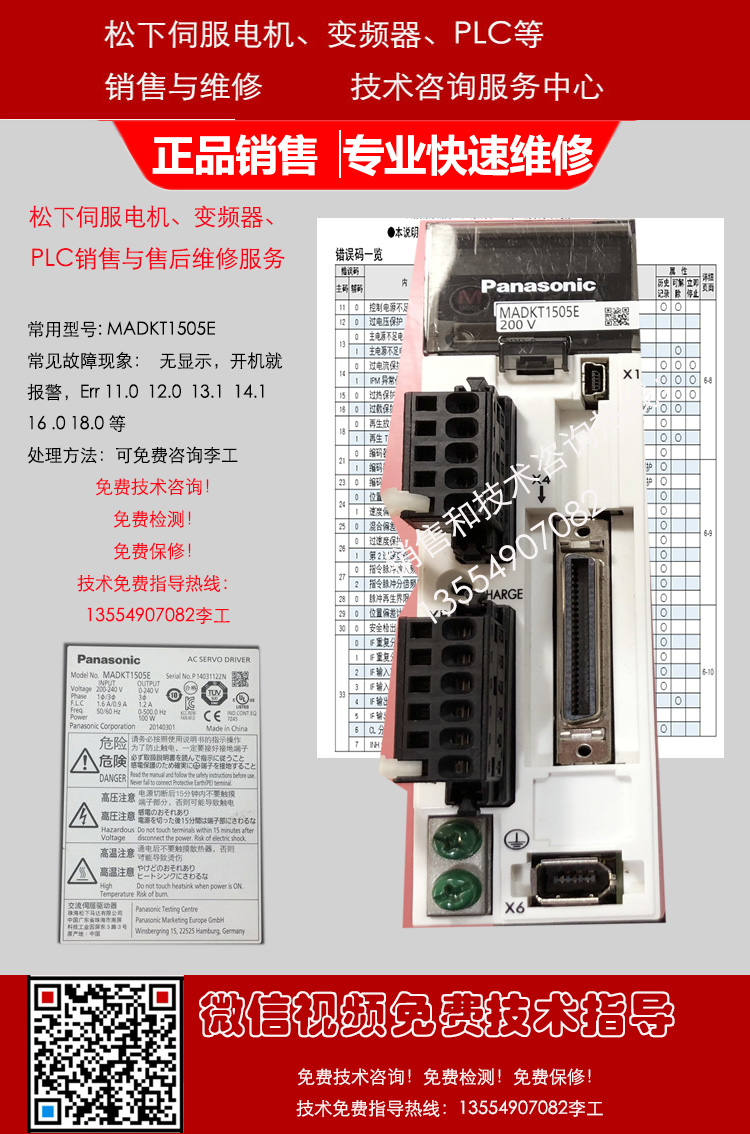 松下MINAS A5驱动器MADHT1505 MSMD5AZG1U MADHT1505E MSMD5AZG1V MADHT1505CA1 MADHT1505E02 MSMD012G1U MSMD012G1V MADKT1505 MADKT1505E MADKT1505CA1