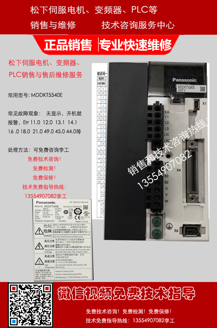 松下MINAS A5驱动器MDDHT5540 MDME152GCGM MSME102GCG MSME102GCH MDDHT5540CA1 MDDHT5540E MDDKT5540 MDDKT5540E MDDKT5540CA1 MHME152GCG MHME152GCH