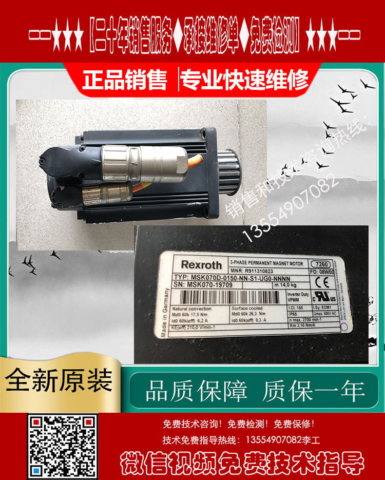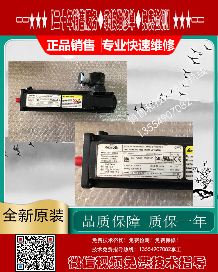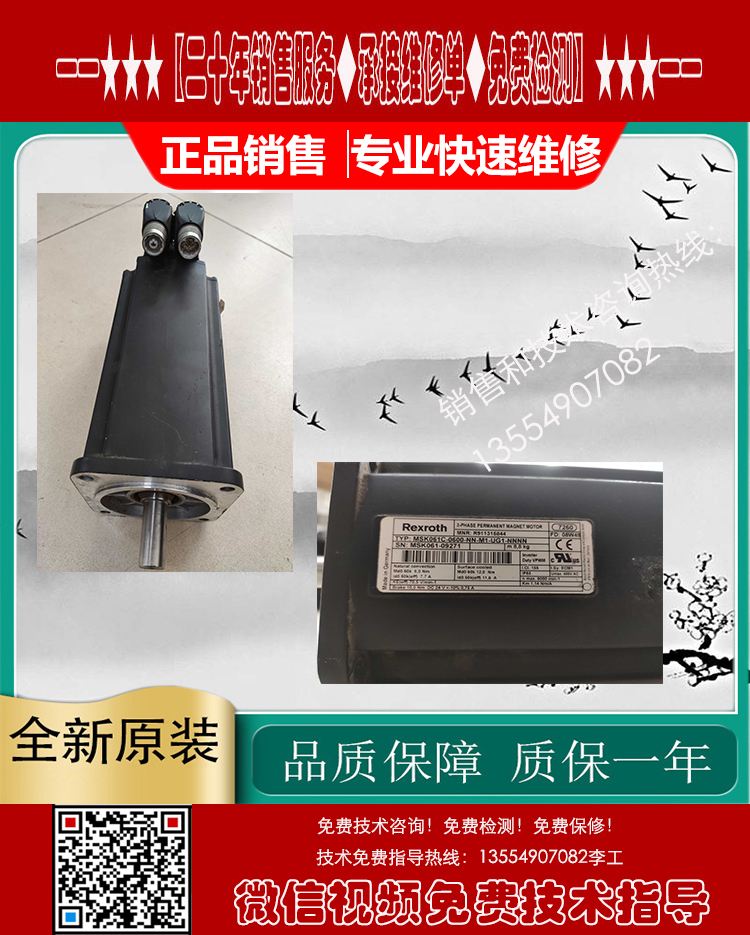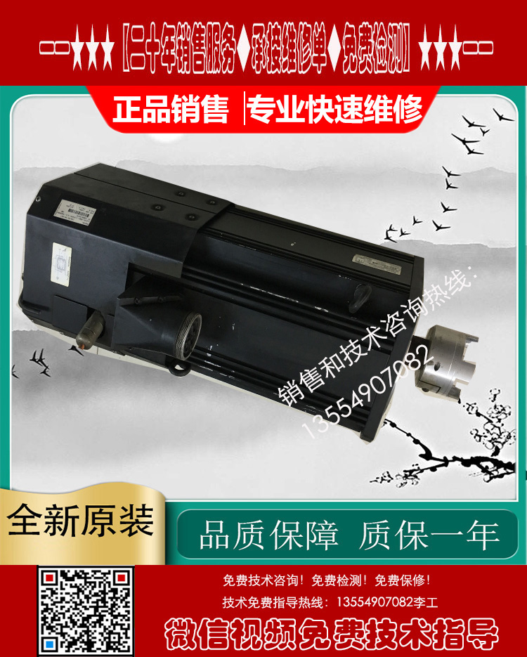 维修故障:磁铁爆钢、磁铁脱落、卡死转不动、编码器磨损、码盘/玻璃盘磨损破裂、电机发热发烫、电机进水、电机运转异常、高速运转响声、噪音大,刹车失灵、刹车片磨损、低速正常高速偏差、高速正常低速偏差、启动报警、启动跳闸、过载、过压、过流、不能启动、启动无力、运行抖动、失磁、跑位、走偏差、输出不平衡、编码器报警、编码器损坏、位置不准、一通电就报警、一通电就跳闸、驱动器伺服器报警代码、烧线圈绕组、航空插头损坏、原点位置不对,编码器调试/调零位、更换轴承、轴承槽磨损、转子断裂,轴断裂、齿轮槽磨损等。