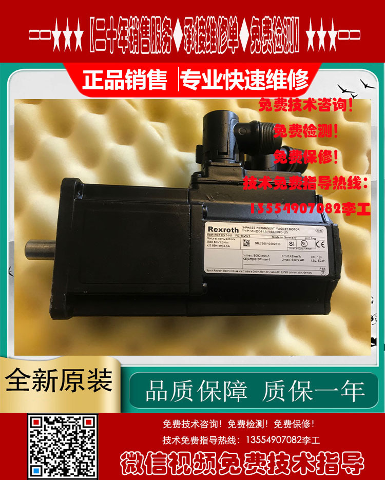 R911281505 MHD041B-144-NP1-UN 力士乐伺服电机维修常见的6种故障 1、编码器故障:编码器是伺服电机的核心部件也是易损部件,可对伺服电机进行编码器的维修和更换,借助美国进口先进检测设备进行可视化零点校对,确保编码器零点位置达到原厂标准,保证伺服电机的原厂电气性能无损。