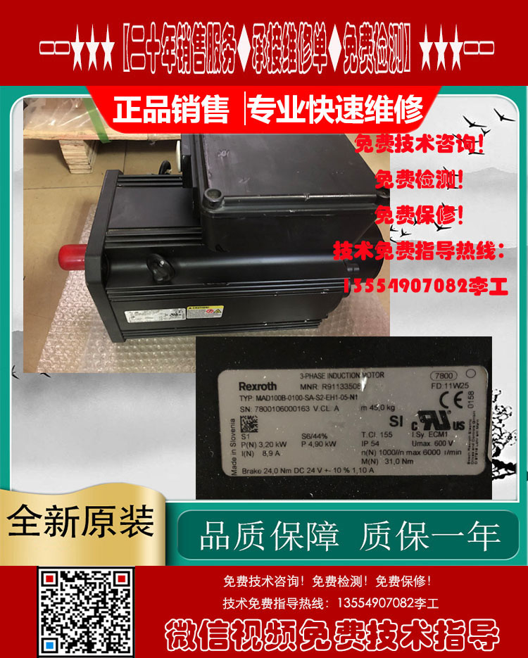 维修故障:磁铁爆钢、磁铁脱落、卡死转不动、编码器磨损、码盘/玻璃盘磨损破裂、电机发热发烫、电机进水、电机运转异常、高速运转响声、噪音大,刹车失灵、刹车片磨损、低速正常高速偏差、高速正常低速偏差、启动报警、启动跳闸、过载、过压、过流、不能启动、启动无力、运行抖动、失磁、跑位、走偏差、输出不平衡、编码器报警、编码器损坏、位置不准、一通电就报警、一通电就跳闸、驱动器伺服器报警代码、烧线圈绕组、航空插头损坏、原点位置不对,编码器调试/调零位、更换轴承、轴承槽磨损、转子断裂,轴断裂、齿轮槽磨损等。