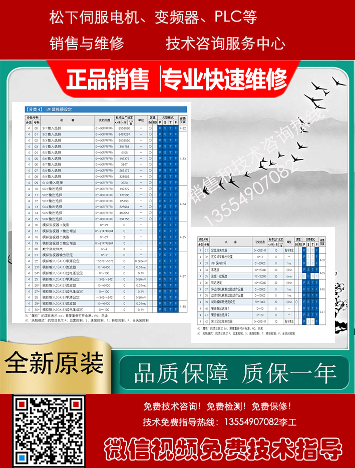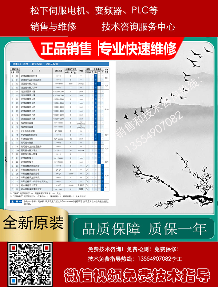 松下伺服电机维修故障:上电不运行、磁铁爆钢、磁铁脱落、卡死转不动、编码器磨损、码盘/玻璃盘磨损破裂、电机