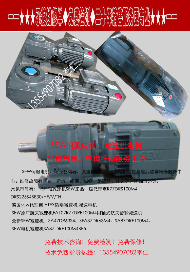 SEW减速机R137DV180M4/BM/HF/V 德国SEW减速发电机 断齿、卡齿、脱齿、不能启动、启动无力、运行抖动、跑位、走偏差、输出不平衡、