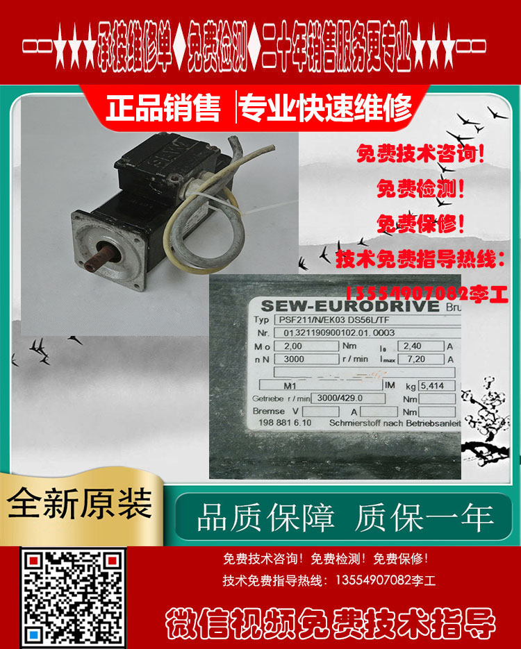 DS56L/B/TF SEW伺服电机马达 PSF211/EK03/N 烧线圈绕组、航空插头损坏、原点位置不对,编码器调试/调零位、更换轴承、轴承槽磨损、转子断裂,轴断裂、齿轮槽磨损等、伺服电机销售维修,主轴伺服马达故障处理,编码器销售维修¥ 0.00立即购买
