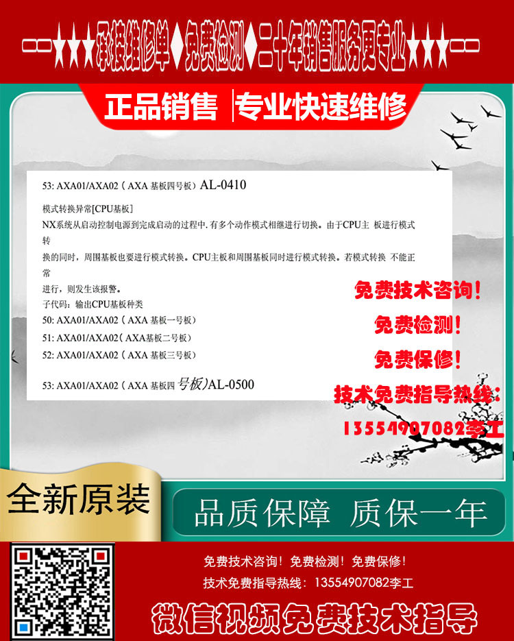 AL-0410 模式转换异常 CPU基板 NX系统从启动控制电源到完成启动的过程中,有多个动作模式相继进行切换。YASKAWA安川MOTOMAN机器人常见报警号及解决方法